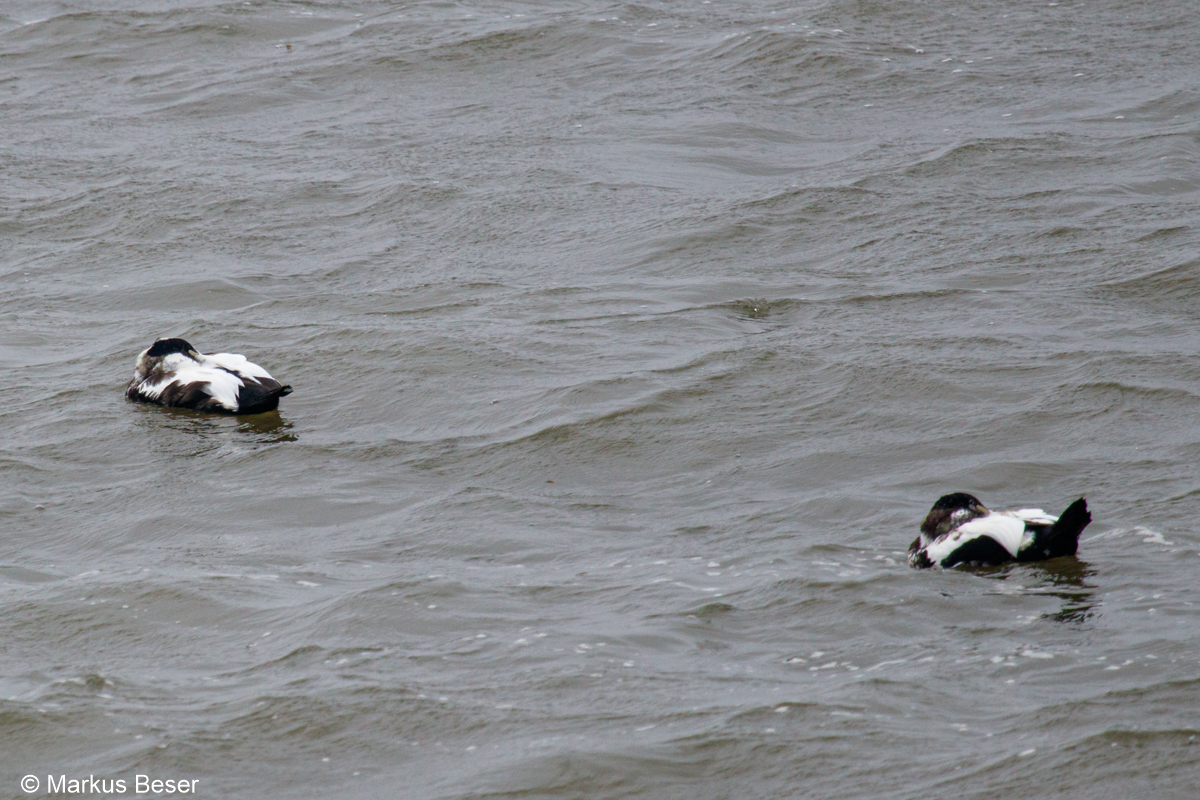 Ein Besuch des Eidersperrwerkes durfte natürlich nicht fehlen. Es ist das größte deutsche Küstenschutzbauwerk, sehr beeindruckend. Was hier nicht fehlte, war ein Trupp Eiderenten auf der Seeseite.